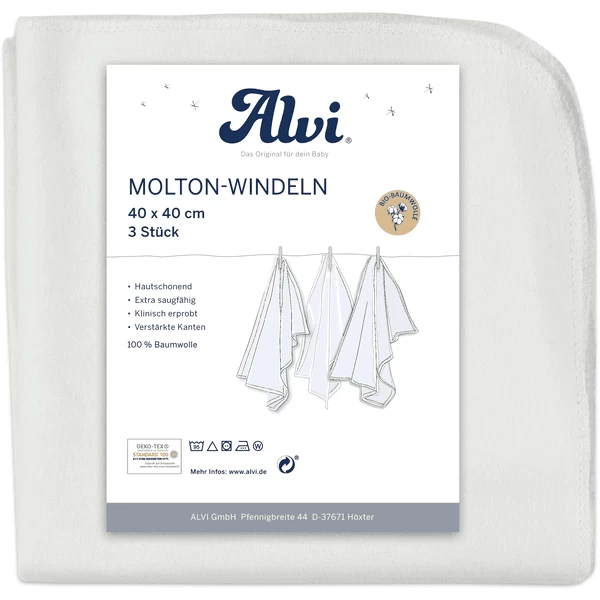 Alvi ® Molton Luiers 3-pack Wit 40 X 40 Cm