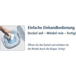 Dankzij de extra grote capaciteit behoren frequente uitstapjes naar de vuilnisbak nu tot het verleden. Tot 57 luiers kunnen hygiënisch en absoluut geurloos worden weggegooid in de Dress-Up XL-luierbak.