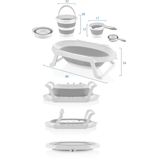 - 3-delige complete set met badje, bademmer en opscheplepel, allemaal vouwbaar