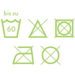 Wassen in de wasmachine op maximaal 60°C. Gebruik geen chloorbleekmiddel. Niet weken. Niet in de droogtrommel. Niet strijken.