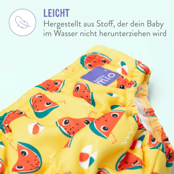 - De waterafstotende buitenlaag en de lekvrije afwerking op de beenstukken houden uw baby veilig in het water
