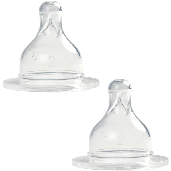 De siliconenspenen zijn voorzien van een brede hals en zijn daardoor compatibel met de BEABA flessen met wijde hals.