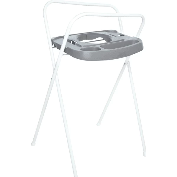 De opvouwbare badstandaard bébé-jou is uitgerust met het innovatieve Click systeem. Met slechts 2 Click s worden de bebe-jou badkuip en de thermische badkuip stevig bevestigd op de bébé-jou badkuipstandaard. De badkuip kan even gemakkelijk worden losgemaakt met een Click aan de onderzijde van de badkuipstandaard. Onze bébé-jou Bubble (bademmer) past ook op deze badstandaard. Dus je hebt maar één badstandaard nodig. Eerst voor de bébé-jou Bubble en dan voor de badkuip. Net zo belangrijk als de juiste houding bij het gebruik van de B aden , is het ook belangrijk om alles binnen handbereik te hebben. Daarom is de badstandaard bébé-jou uitgerust met een geïntegreerde handdoekhouder en is hij verkrijgbaar in twee hoogtes (98 cm en 103 cm).