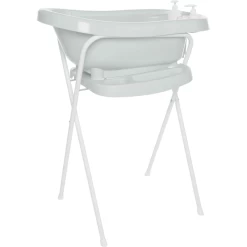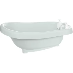 Het thermische bad bébé-jou met het innovatieve ” Click -systeem” zorgt voor extra veiligheid en comfort tijdens het b aden s. Met slechts 2 Click s wordt de badkuip stevig bevestigd aan de bebe-jou badstandaard. De badkuip kan even gemakkelijk worden losgemaakt met een Click aan de onderzijde van de badkuipstandaard. Deze speciale badkuip heeft een geïntegreerde thermometer en 2 dispensers voor shampoo en zeep. De badthermometer is ook een stop. Druk hem omhoog en het water loopt eruit via de bijgeleverde afvoerslang. Bijvoorbeeld, in de bebe-jou luieremmer. Zwaar tillen is niet meer nodig. Al met al een luxueus bad dat alles biedt wat u nodig hebt om u volledig op het b aden van uw kind te concentreren.