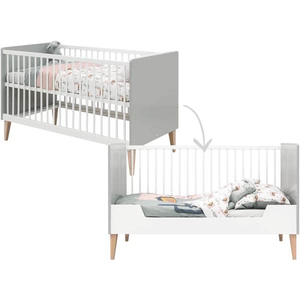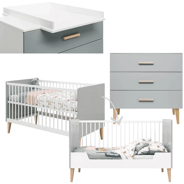 Bopita Babykamer Emma 2-delig ombouwbaar , met aankleedkussen 70 x 140 cm wit/grijs
