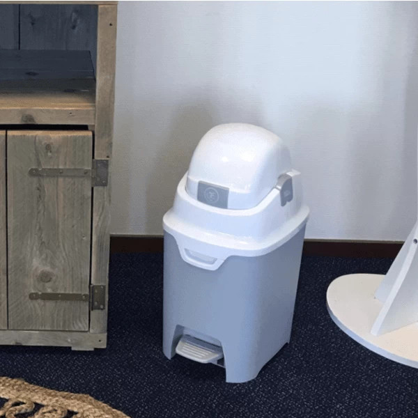 - Om aan de hygiënevoorschriften te voldoen, heeft Diaper Champ een nieuwe luieremmer ontwikkeld die handenvrij kan worden gebruikt