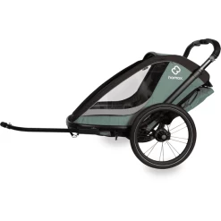 * 6 maanden is de aanbevolen leeftijd bij gebruik van de aanhanger achter een fiets. In de kinderwagenstand kan de aanhanger worden gebruikt door de pasgeborene met de babyinzet geĆÆnstalleerd.
