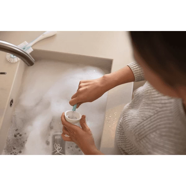 - Door het luchtgat in het handvat van de flessenborstel kan de speenborstel snel drogen