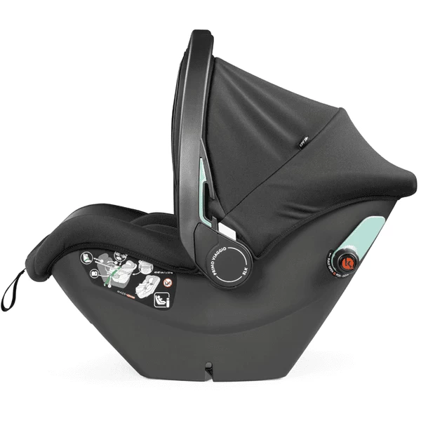 - Dankzij de verstelbare rugleuning kan de baby in liggende positie worden vervoerd in de auto (alleen in combinatie met de i-Size base station ).