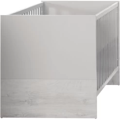 Het kinderbedje kan worden omgebouwd tot een Junior bed en kan worden gebruikt tot de leeftijd van 7 jaar (of een gewicht van 50 kg). Bijzonder comfortabel om uw baby uit bed te tillen is de bovenste positie van de 3-voudig in hoogte verstelbare wieg. Met de drie uitneembare sliptreden kan uw kind veilig in- en uitstappen. De brancard voldoet aan de huidige veiligheidsnormen volgens EN 716 – 1:2017 + AC:2019.