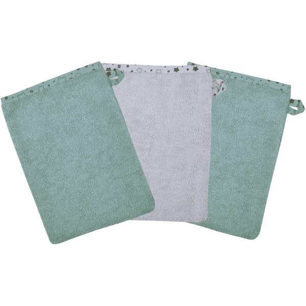 Geweldige 3-pack washandjes van zacht katoen met mooie stermotieven op de rand en op de lus.